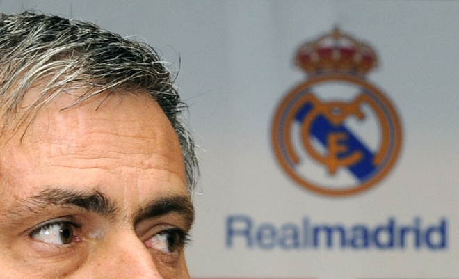 Real Madrid’s new coach Portuguese Jose Mourinho gives a press conference during his official presentation at the Santiago Bernabeu stadium in Madrid on May 31, 2010. Multi-trophy winning Jose Mourinho becomes Real’s 10th coach in as many seasons, during a period when their great rivals Barcelona have had just two with better results and titles. AFP PHOTO / DOMINIQUE FAGET (Photo credit should read DOMINIQUE FAGET/AFP/Getty Images)(Photo Credit should Read /AFP/Getty Images)